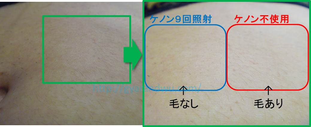 ケノンの脱毛効果!(9回照射で、腹毛除毛は完全に卒業しました!)